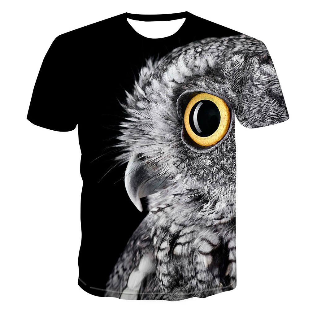 Kaos T Shirt Lengan Pendek Casual Print Burung Hantu Hitam Putih 3d Untuk Pria Shopee Indonesia