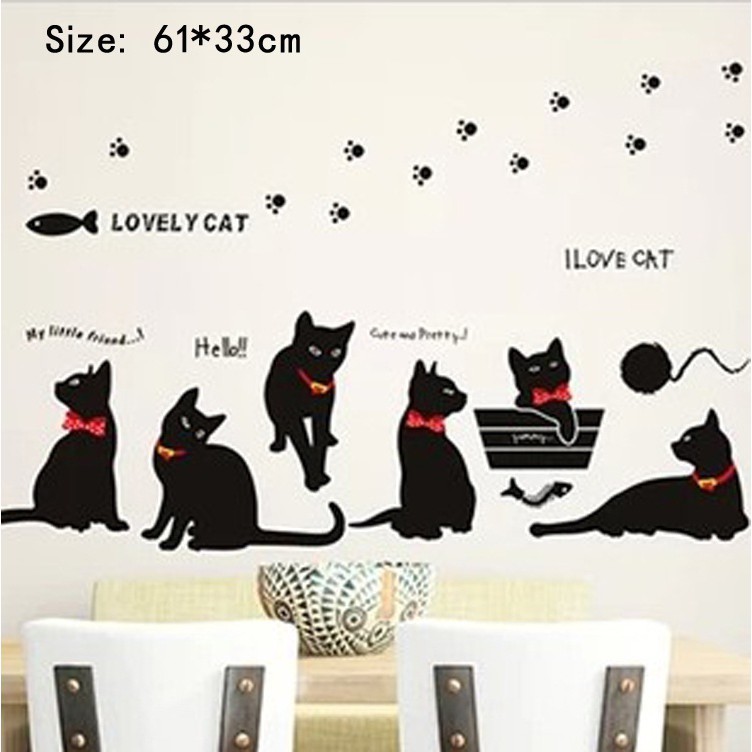 Pujianghuihuang Diy Stiker Dinding Dengan Bahan Pvc Mudah Dilepas Gambar Kartun Kucing Warna Hitam Shopee Indonesia