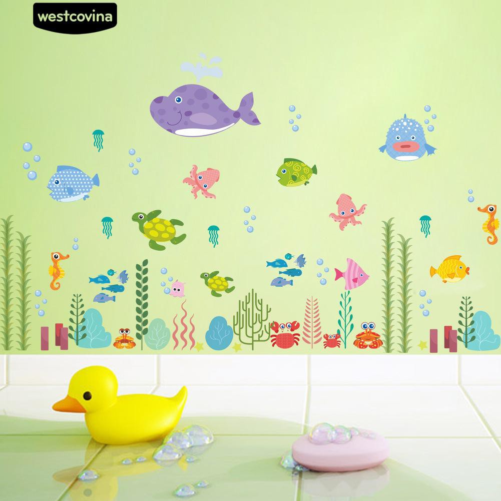 Bawah Laut Paus Ikan Rumput Laut Wall Stiker Untuk Anak Anak Kamar Nursery Dekorasi Rumah Kartun Hewan Stiker Dinding Diy Poster Pvc Mural Seni Wall Stickers Aliexpress