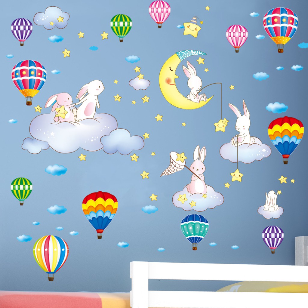 Stiker Dinding Kelinci Awan Langit Bintang Bulan Bayi Kartun Anak Anak Tk Kelas Shopee Indonesia