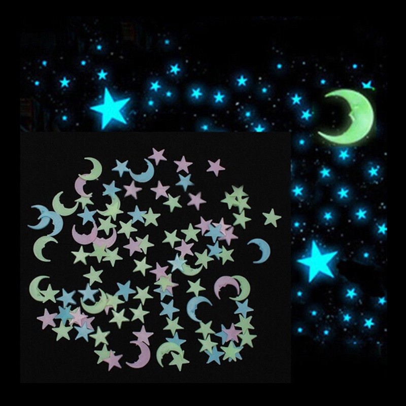 Set 100pcs Stiker Dinding Dengan Gambar Bintang Dan Bulan Warna Menyala Dalam Gelap Shopee Indonesia
