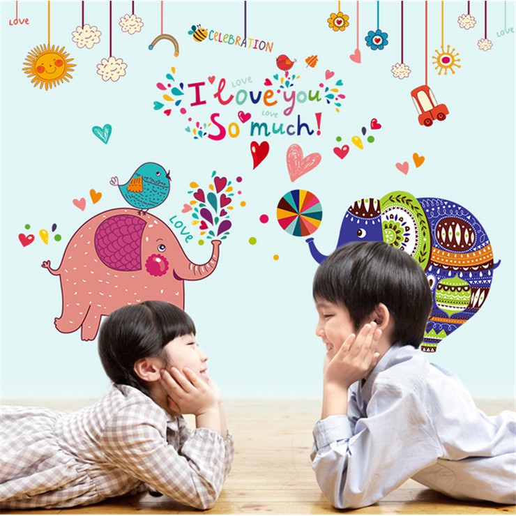 Stiker Dinding Dengan Bahan Mudah Dilepas Dan Gambar Kartun Gajah Untuk Dekorasi Kamar Anak Shopee Indonesia