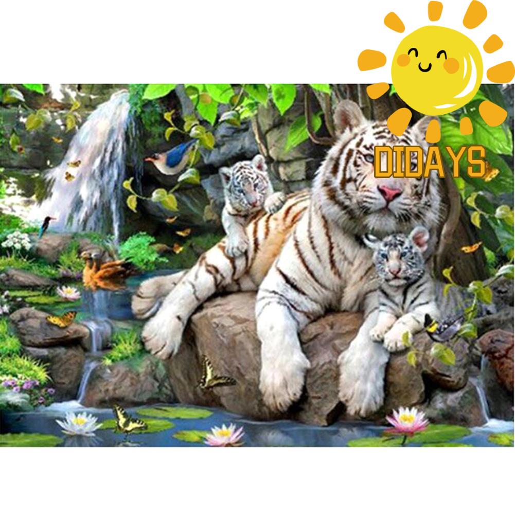 Diy Lukisan Diamond 5d Dengan Gambar Keluarga Harimau Warna Putih Untuk Hiasan Dekorasi Rumah Shopee Indonesia