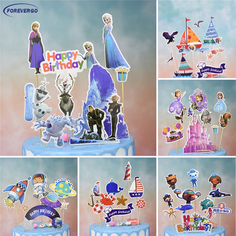 Re Hiasan Topper Kue Dengan Gambar Kartun Tulisan Happy Birthday Untuk Perlengkapan Pesta Shopee Indonesia