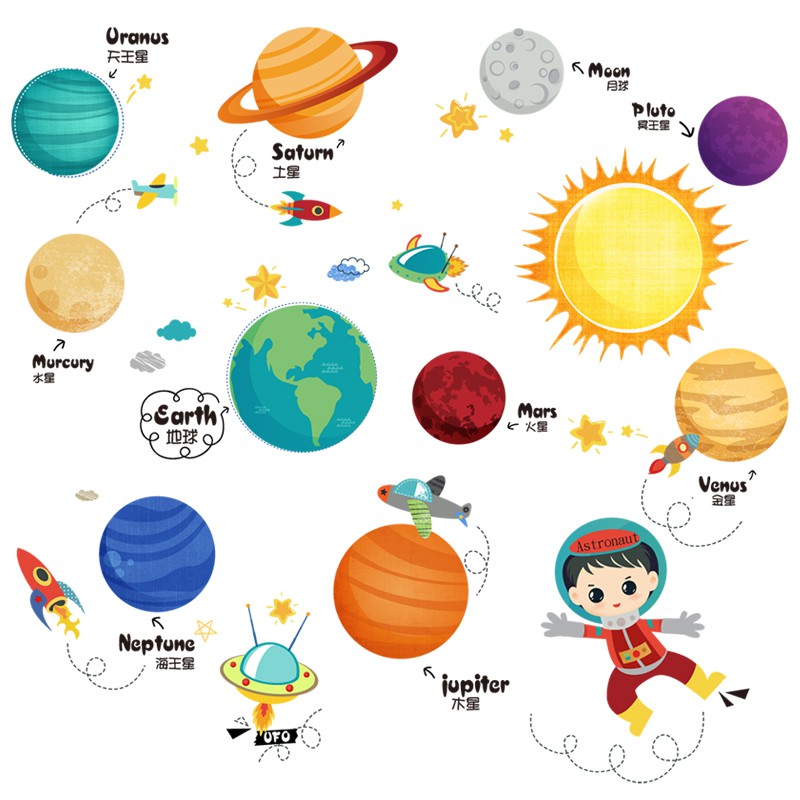 Cartoon Planet Children S Room Decoration Boy Bedroom Wallpaper Self Adhesive Small Pattern Stickers Dormitory Layout Wa Shopee Malaysia