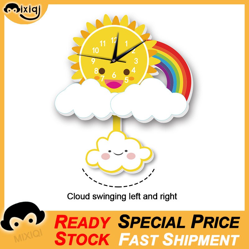 Mixiqi Diy Rumah Stiker Jam Dinding Matahari Pelangi Awan Jam Anak Kartun Jam Dekorasi Jam Shopee Indonesia