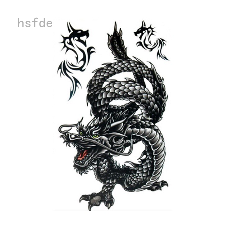 Hsfde Stiker Tato Sementara Keren Tahan Air Gambar Naga Hitam Keren 20 5x10cm Shopee Indonesia