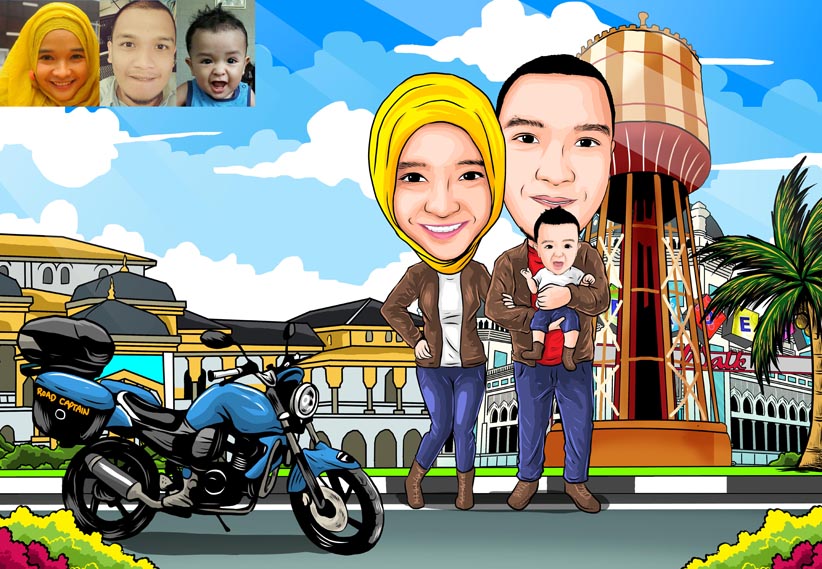 Jasa Karikatur Bikin Karikatur Di Medan Telp Wa 085296202126 Karikatur Keluarga Medan Naik Motor