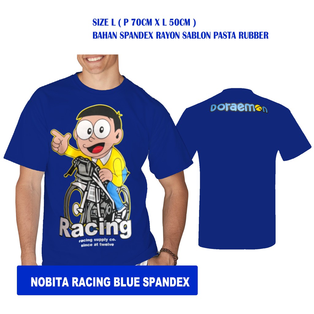 Kaos Kartun Nobita Naik Motor Blue Spandex Bangkaos Shopee Indonesia