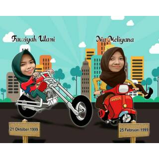 Jasa Karikatur Bikin Karikatur Di Medan Telp Wa 085296202126 Karikatur Wedding Naik Motor Trail