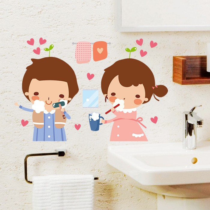 Wall Sticker Toilet Kamar Mandi Wastafel Pasangan Menyikat Gigi Cinta Baru Tata Shopee Indonesia