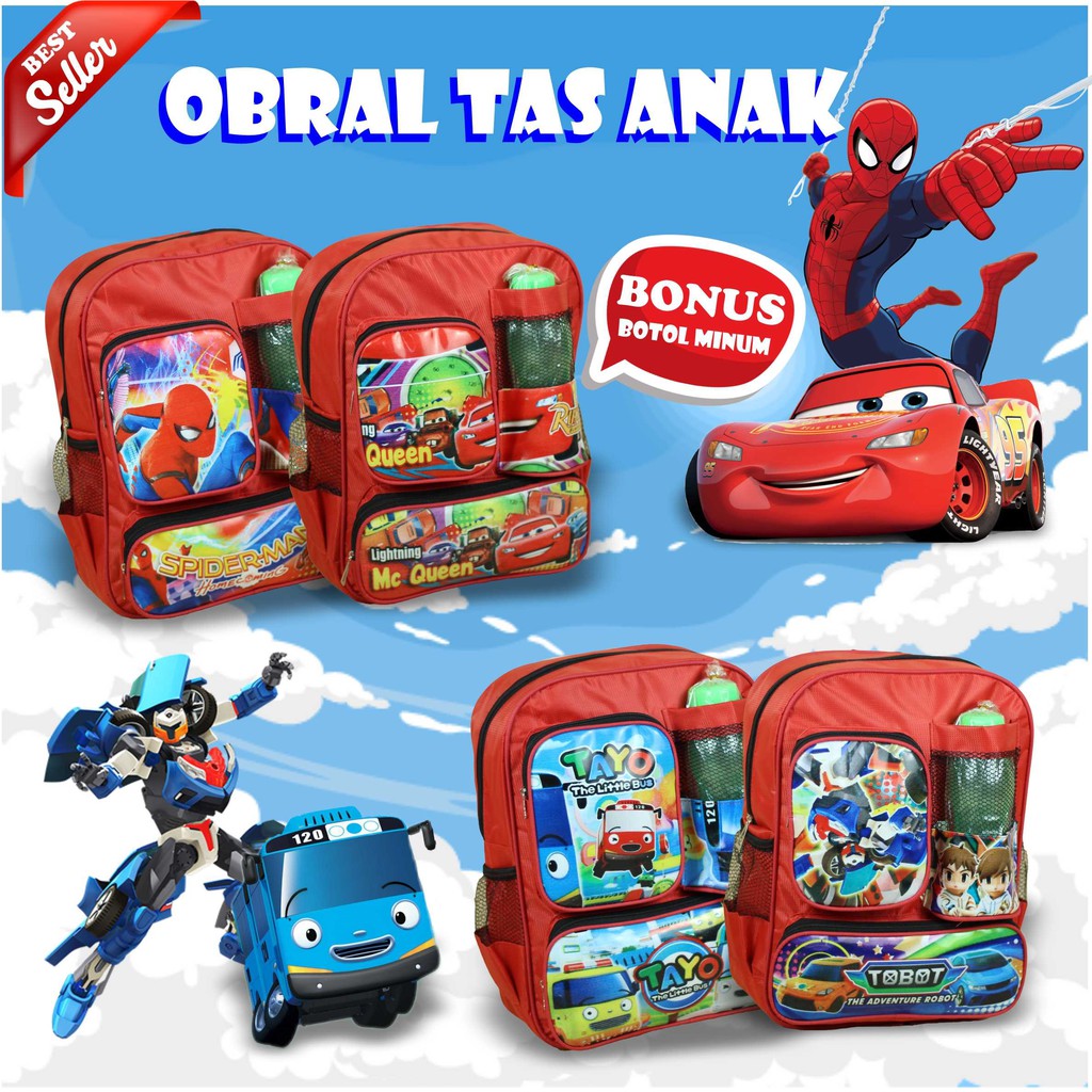 Tas Anak Sekolah Laki Laki Ransel Punggung Free Botol Minum Gambar Kartun Cowo Anak Playgroup Tk Shopee Indonesia