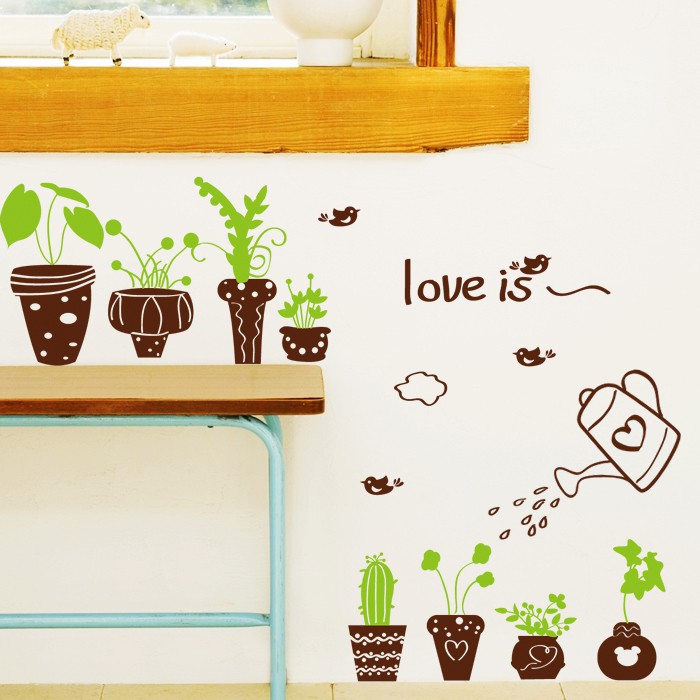 Stiker Dinding Bahan Mudah Dilepas Gambar Kartun Tanaman Bunga Untuk Dekorasi Rumah Shopee Indonesia