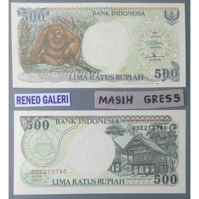 Rp 500 Rupiah Tahun 1992 Bukan 1991 Monyet Duduk Orang Utan Uang Kertas Kuno Gress Mulus Shopee Indonesia