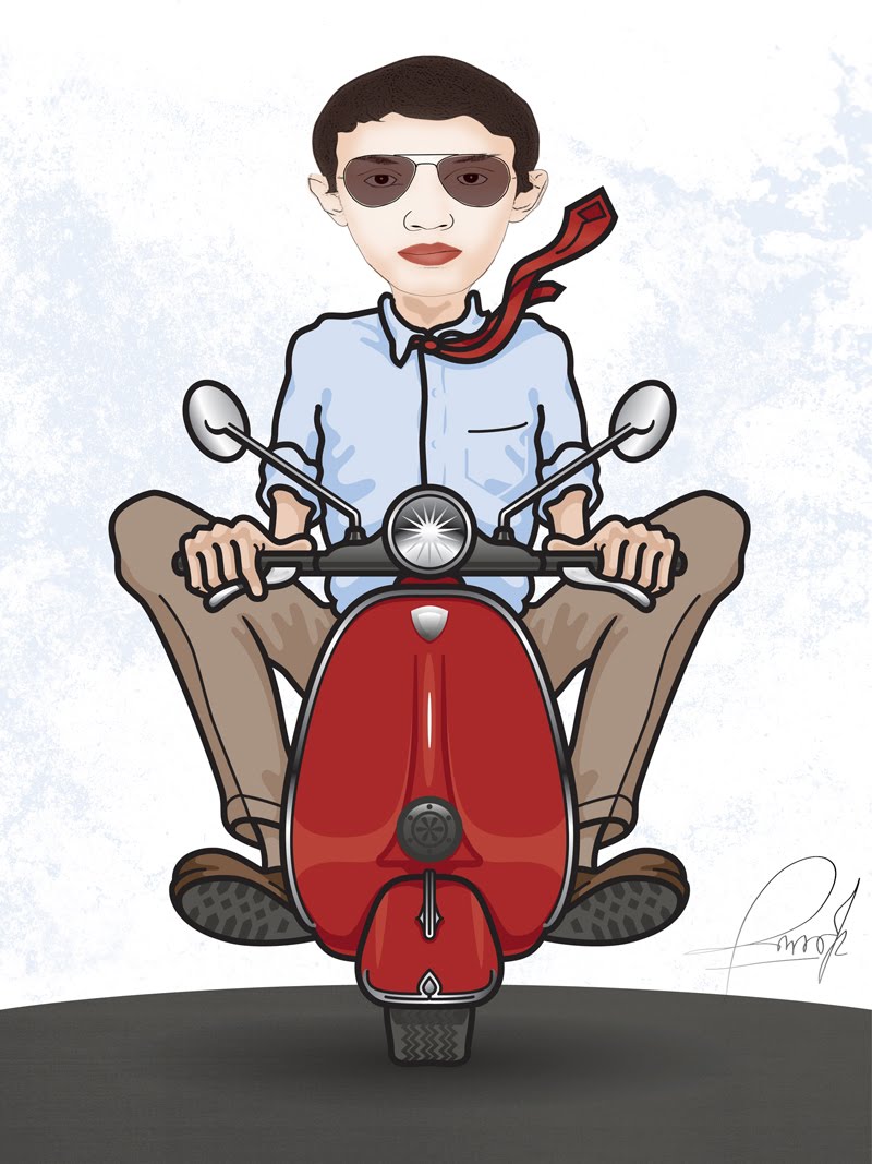 Gambar Kartun Orang Naik Vespa