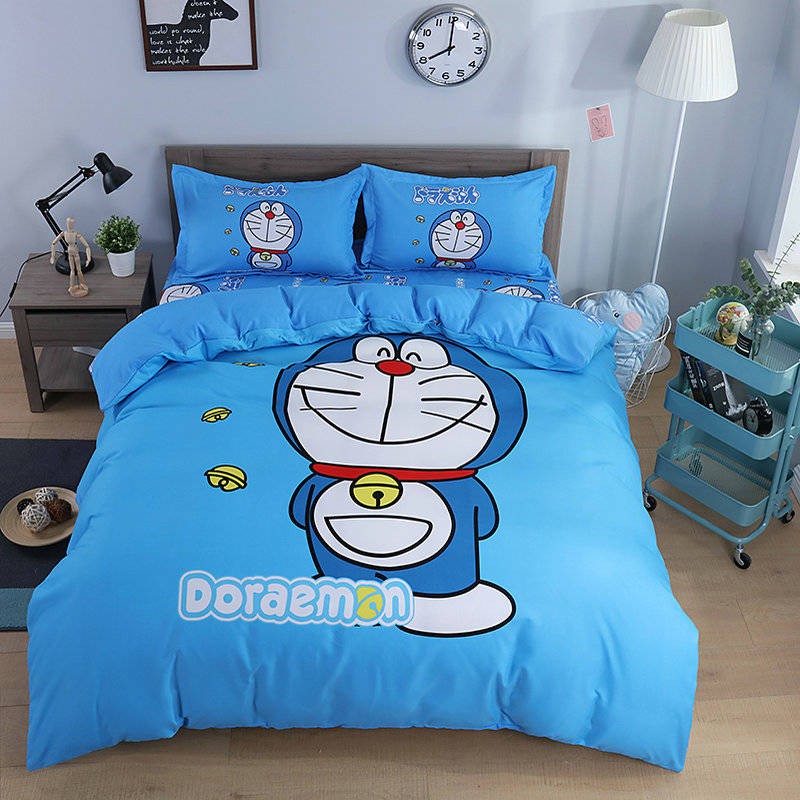 Set 4pcs Sprei Sarung Bantal Dan Selimut Dengan Bahan Tebal Gambar Kartun Warna Biru Shopee Indonesia