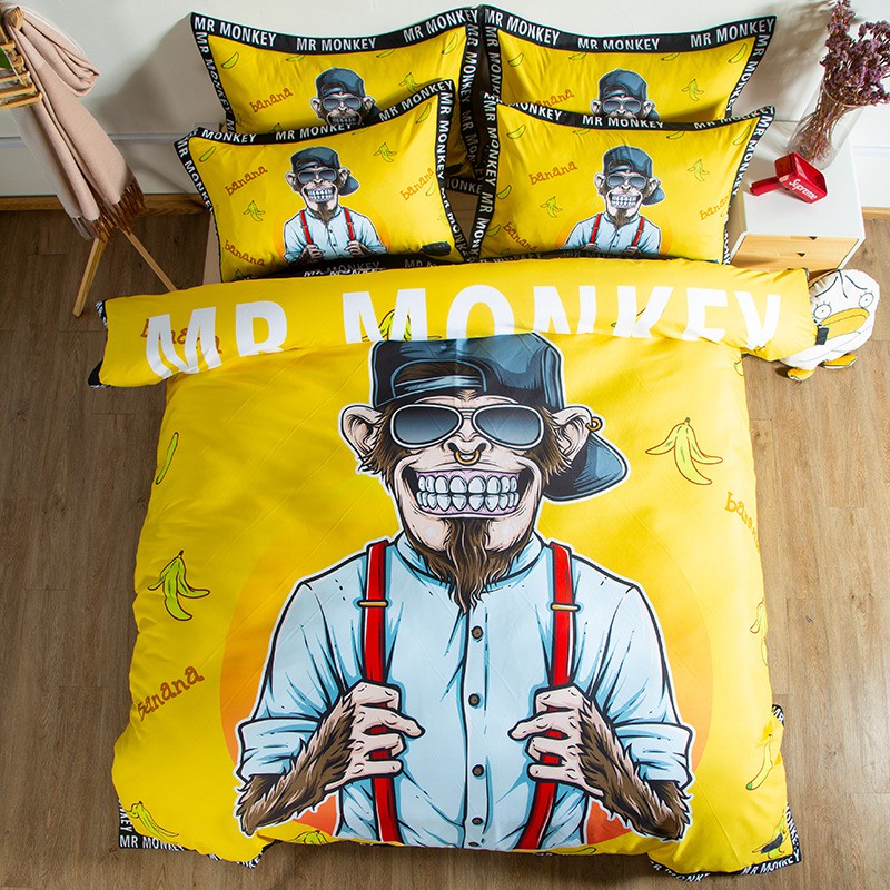 Set 4pcs Sprei Sarung Bantal Dan Selimut Dengan Bahan Katun Gambar Kartun Monyet Warna Kuning Shopee Indonesia