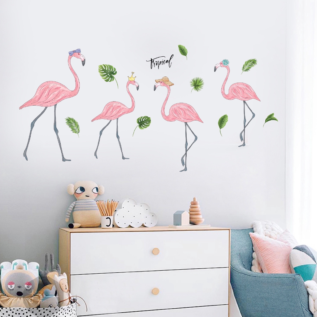 Stiker Dinding Dengan Bahan Mudah Dilepas Gambar Flamingo Dan Gajah Untuk Dekorasi Rumah Shopee Indonesia
