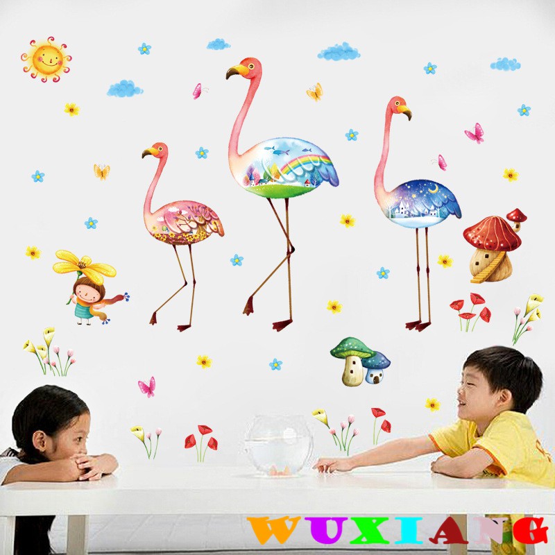 Wuxiang Wall Sticker Flamingo Berwarna Warni Wallpaper Home Decor Sticker Wallpaper Dinding Shopee Malaysia