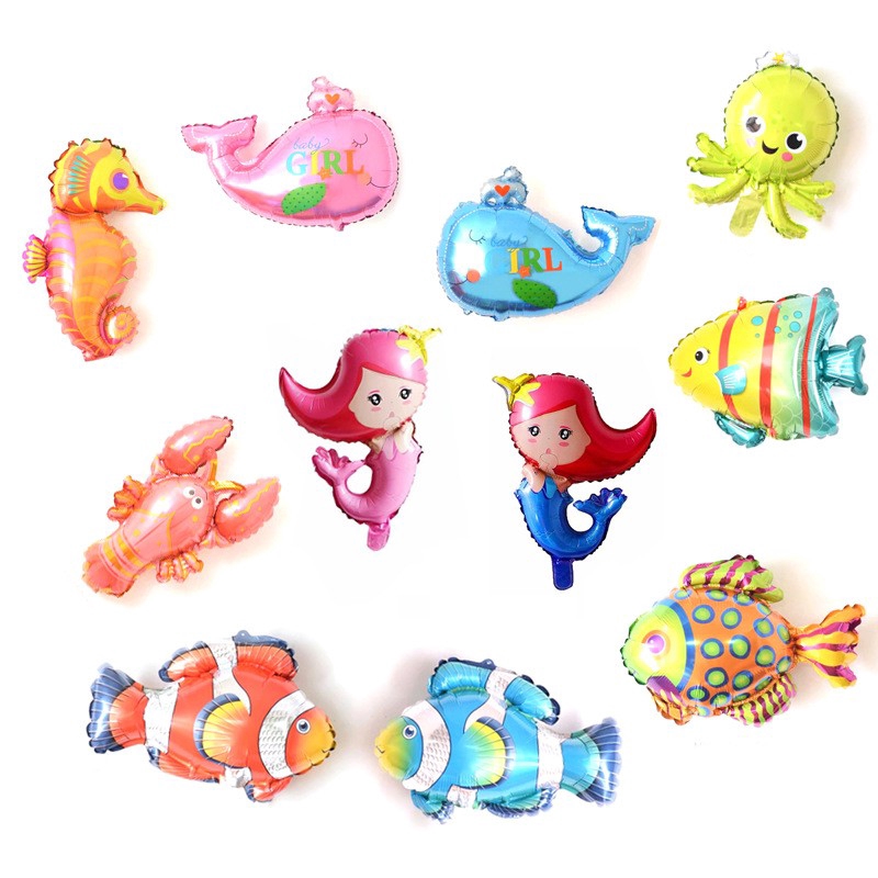 1pc Balon Mini Gambar Kartun Ikan Hiu Gurita Mermaid Lumba Lumba Shopee Indonesia