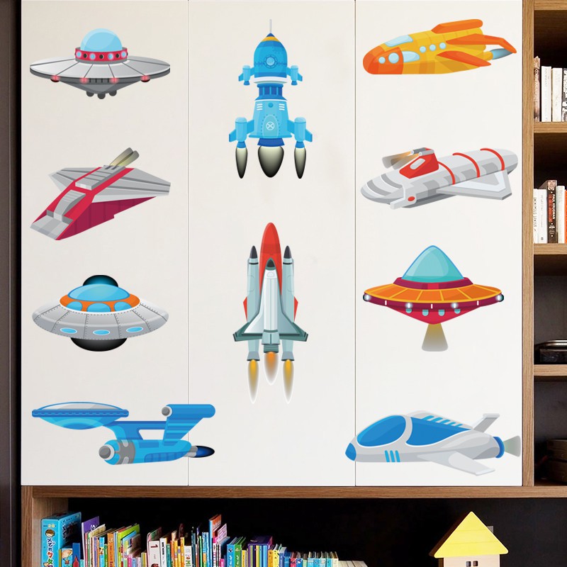 Desain Asli Lucu Kartun Pesawat Ruang Angkasa Roket Anak Anak Tk Kamar Tidur Sti Shopee Indonesia