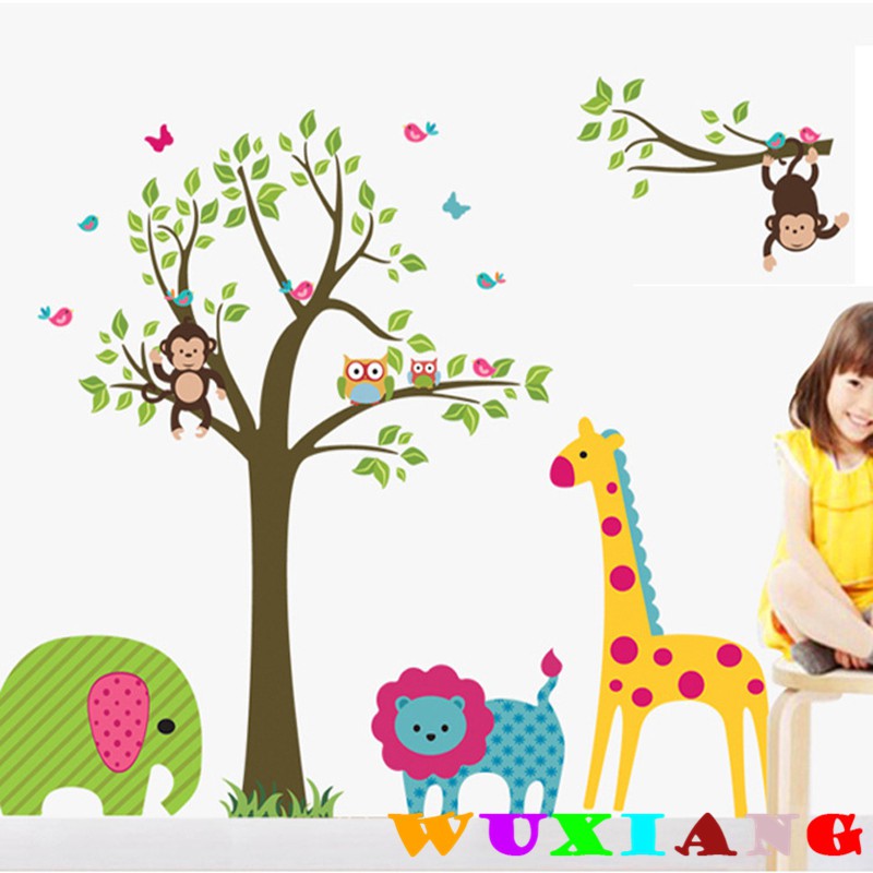 Wuxiang Kartun Jerapah Monyet Pohon Dinding Stiker Dekorasi Rumah Wallpaper Shopee Indonesia